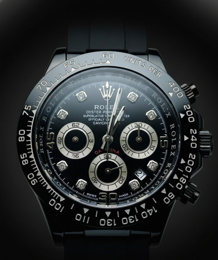 Be the first to review “Classy Type RLX Daytona Silver Black Dial Black Belt Watch”
