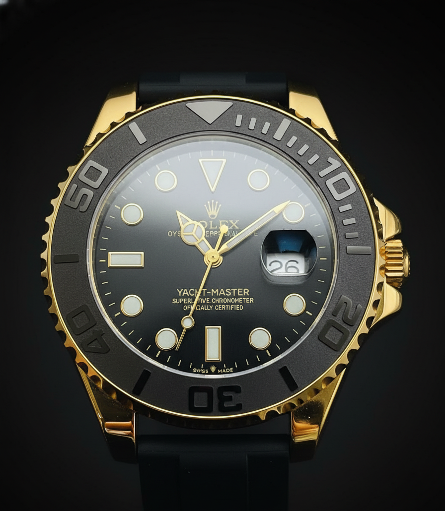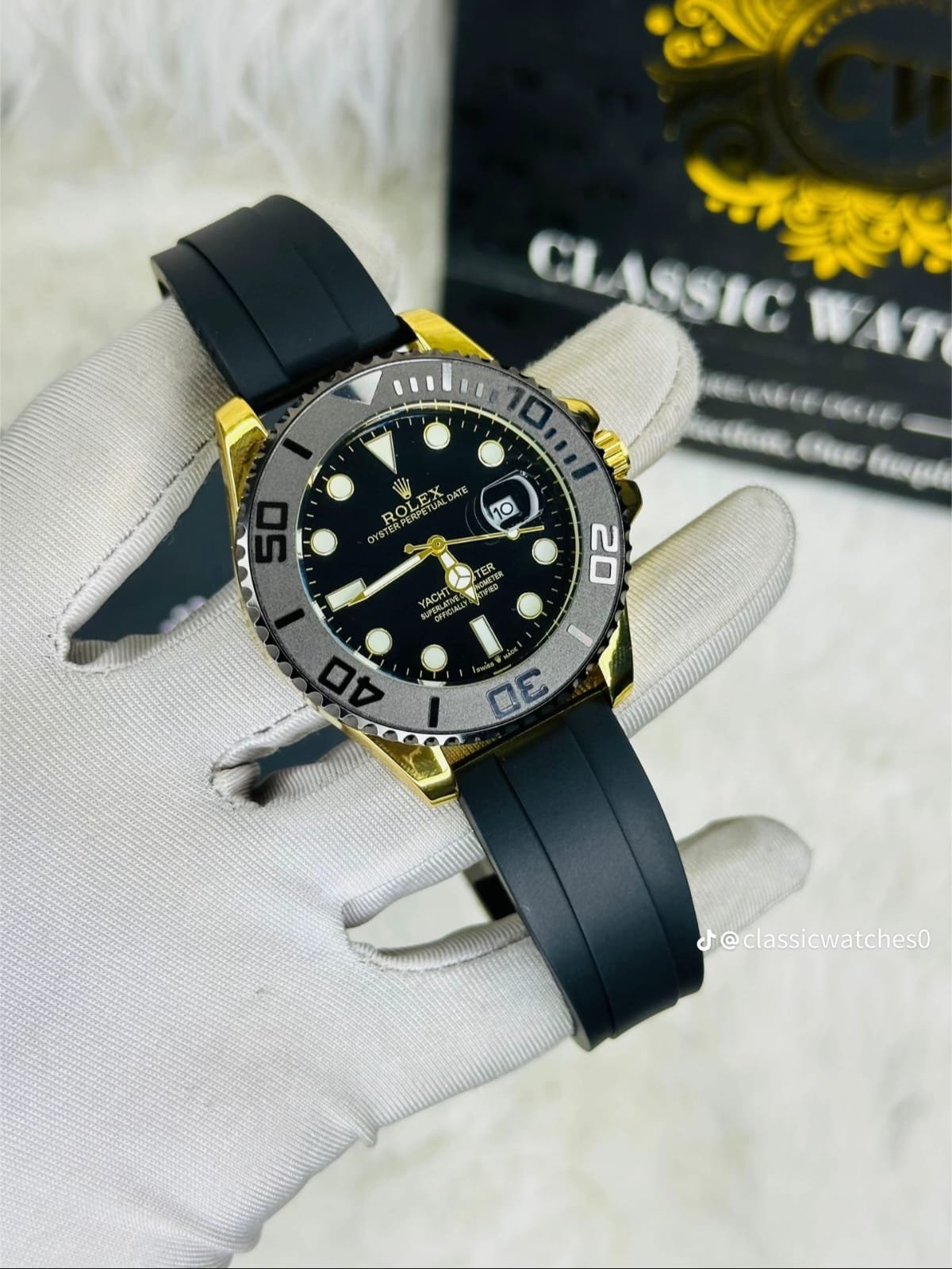 Classy Type RLX Yacht Master Rose Gold Body -Black Dial Belt Watch