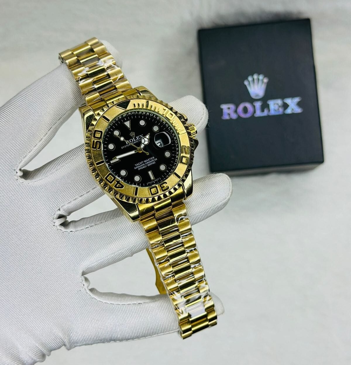 Be the first to review “Premium Quality RLX Black Dial Yacht Master Golden Body Watch”