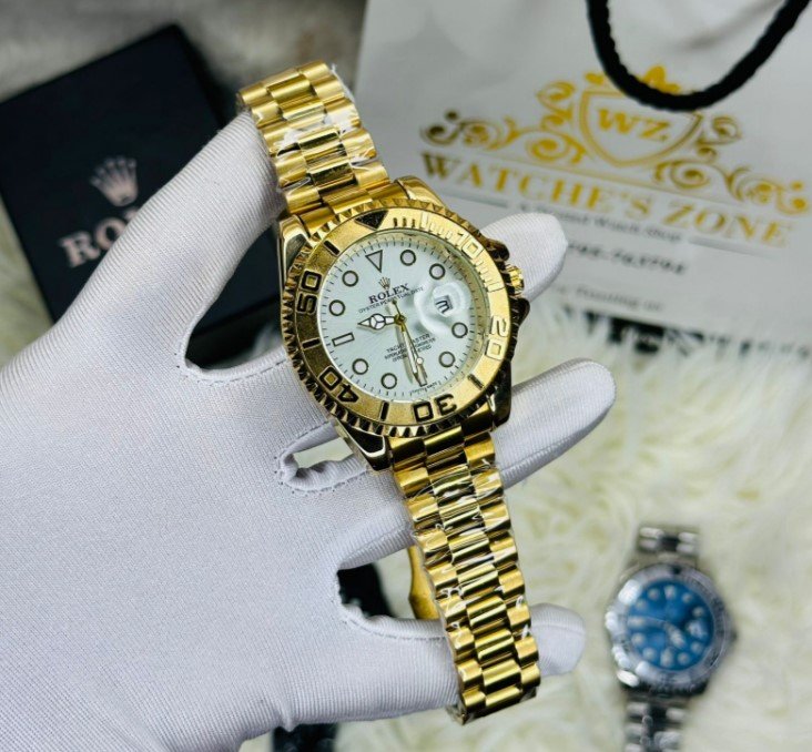 Be the first to review “Premium Quality RLX White Dial Yacht Master Golden Body Watch”
